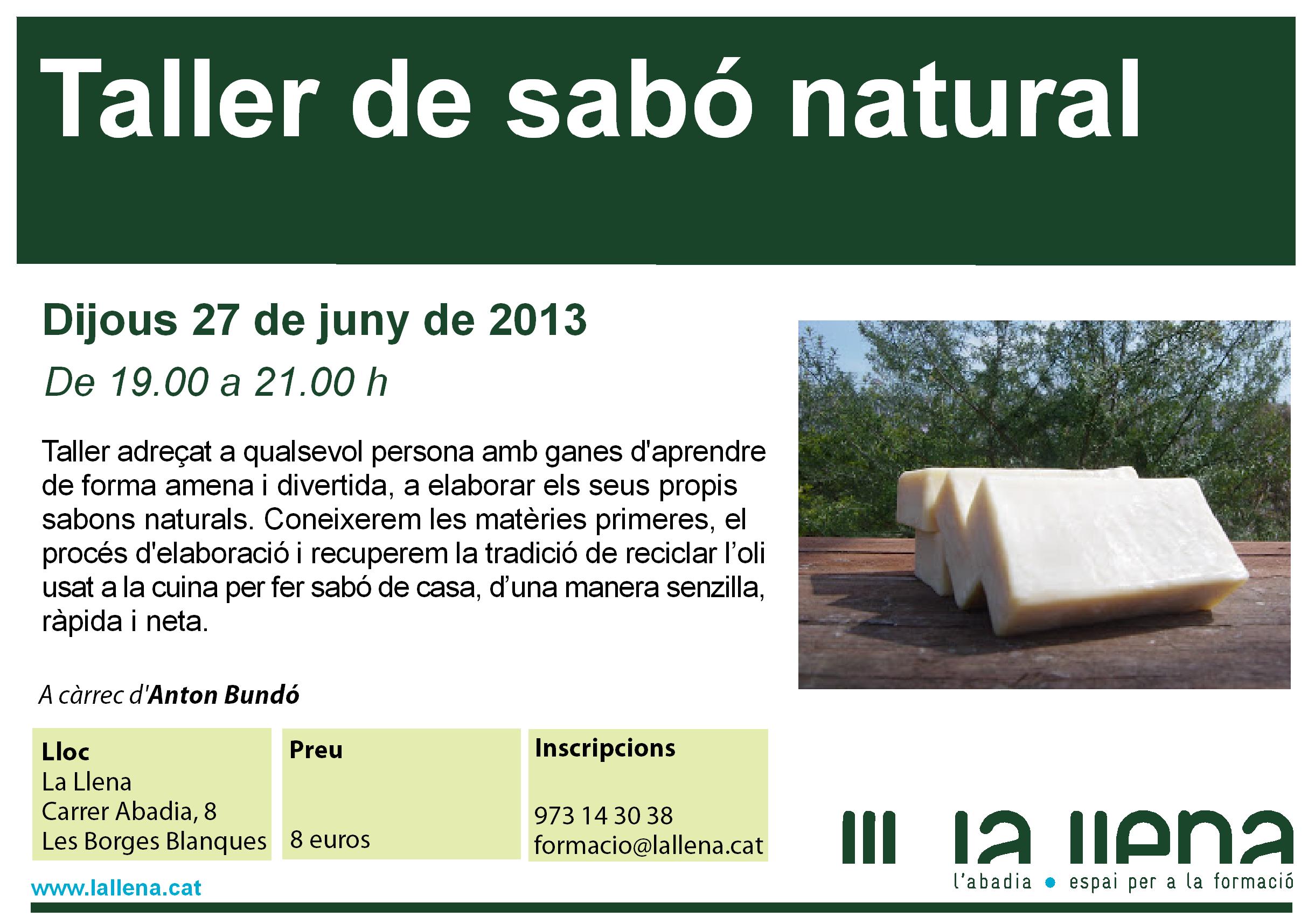Adreçat a qualsevol persona amb ganes d'aprendre de forma amena i divertida, a elaborar els seus propis sabons naturals. Coneixerem les matèries primeres, el procés d'elaboració i recuperem la tradició de reciclar l’oli usat a la cuina per fer sabó de casa, d’una manera senzilla, ràpida i neta.