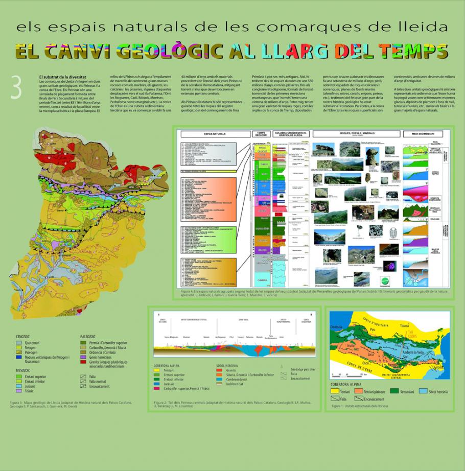 Exposició amb 15 plafons que inclou els espais naturals catalogats per les normatives vigents i aquells paratges considerats com a dignes de reconeixement per les seves particularitats dins el territori. En total s'hi reconeixen un conjunt de 74 espais naturals, des de la plana al Pirineu. Se’n descriu les característiques físiques, geogràfiques, geològiques, climàtiques, la flora, la fauna, els usos i aprofitaments, així com els principals impactes i amenaces.